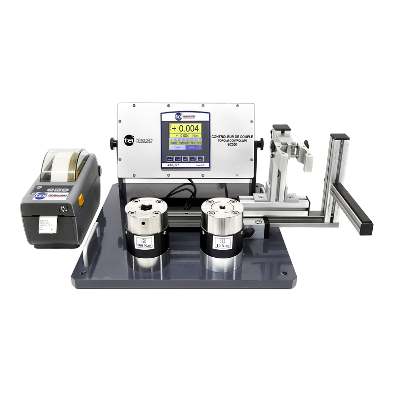 Le contrôleur BC310-VA (Version Atelier) est destiné au contrôle et au réglage des tournevis et clés dynamométriques mécaniques utilisées en atelier pour les opérations de serrage avec couple imposé. Equipé en version standard de 2 capteurs de couple numériques interchangeables et d'un lecteur détecteur, il affiche la valeur de couple de serrage appliquée et mémorise, au choix, la valeur maximale du couple ou bien la première crête correspondant au déclenchement de l'équipement testé. Facile d'utilisation, le BC310-VA est équipé d'un support de clé réglable et d'une détection automatique du capteur utilisé. A l'issue du contrôle, l'opérateur peut éditer une étiquette adhésive sur laquelle sont indiquées la valeur du couple de déclenchement, la date du contrôle et le numéro de série de la clé utilisée. Les capteurs CANbus du BC310 sont reconnus automatiquement par le contrôleur (fonction plug and play), les données d’étalonnage étant stockées dans les capteurs. La maintenance en cas d’étalonnage ou de remplacement est considérablement facilitée.