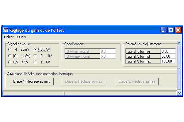 CALSENS est un logiciel convivial disponible en 3 langues (français, anglais et allemand) et destiné au département métrologie. Il permet si nécessaire d'ajuster l'offset et le gain des capteurs, avant l'étalonnage périodique. une très grande simplicité, les réglages s'effectuent à partir de deux pressions de référence, comprises dans l'étendue de mesure des capteurs. Associé au CALYPSE, seule quelques secondes vous seront nécessaires pour réajuster votre capteur.